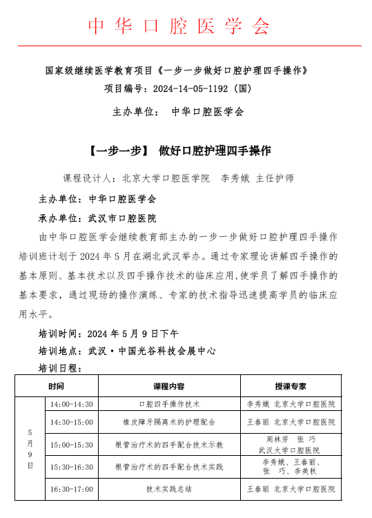 一步一步做好口腔护理四手操作(武汉)通知