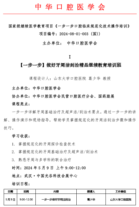 一步一步口腔临床规范化技术操作培训班通知(第一期,江苏)